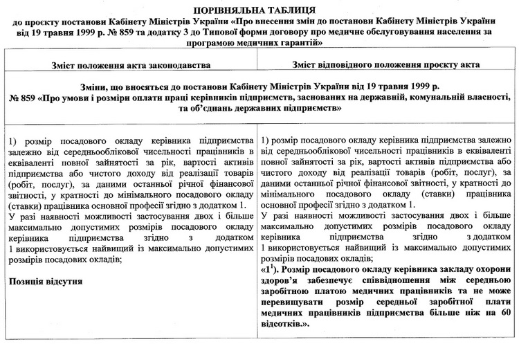 «Сьогодні розмір посадового окладу керівника може до 10 разів перевищувати мінімальний посадовий оклад лікарського складу колективу. Така ситуація демотивує колектив працювати далі. Тому тепер керівники закладів охорони здоров’я будуть мотивовані вживати заходів для підвищення заробітної плати своїм працівникам», - сказав міністр охорони здоров’я Віктор Ляшко.