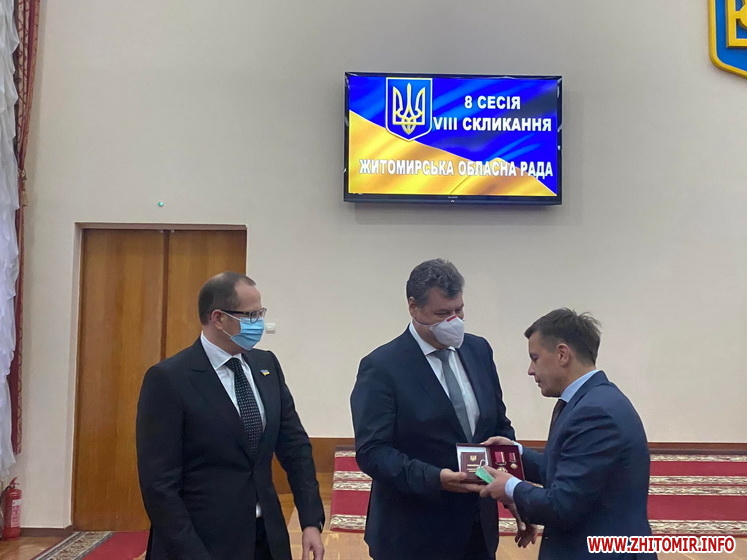 Крім державних нагород, які традиційно вручають на початку кожної сесії, також трьох людей нагородили відзнаками обласної ради «Честь і слава Житомирщини»: