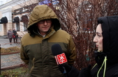 «Це композиція з гілок, є з сосни і ялини. Ціни від 100 до 300 грн, на будь-який смак та вибір. В основному з місцевих лісів, це Левків, Станишівка – навколо Житомира. А це ялинкові шишки, коштують 5 грн, недорого та цікаво. Ціни трошки змінилися, збільшилися, але сьогодні лише перший день, тільки відкриття ялинового базару, до 31 грудня будемо. Я думаю, що можна буде сторгуватися, як на будь-якому базарі – сторгуватися можна буде скрізь. Маленькі композиції в мене є, ялинкові та з сосни, коштують 50-100 грн. Зараз найпопулярнішими будуть маленькі, вони будуть ставитися їх в офіс, вони зручні, їх можна прикрасити і в будь-яке місце поставити», – каже продавчиня Яна.