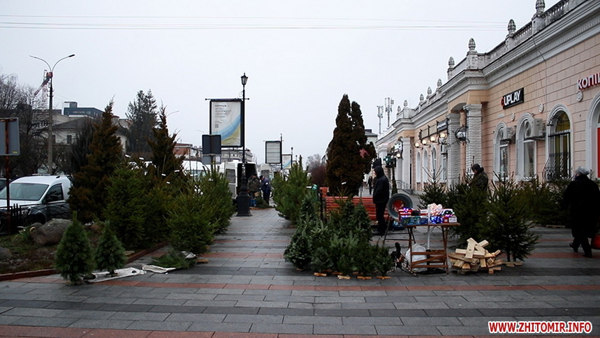 У Житомирі з 16 грудня почали працювати ялинкові базари. На вулиці Небесної сотні вартість новорічного дерева стартує від 50 грн за маленьку ялинку з гілочок, а ось двометрове дерево обійдеться в 1300 грн. Продавці кажуть: кожен може придбати дерево на свій смак та гаманець, а також зізнаються: ціну можна сторгувати.