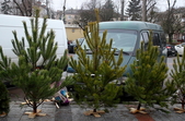 «Дерева по 1,5 метра в мене коштують по 200 грн, вони з Житомирського лісового господарства. Плетемо самі, теж по 100-150 грн. Більші дерева висотою 2 метра — 250 грн. Порівняно з минулим роком ялинки подорожчали на 20-30%. Сьогодні тільки в 6-ій годині ми поставили дерева, люди ще ходять, прицінюються, але ще не купують», — розповідає продавець Віктор.