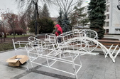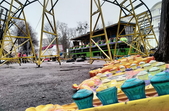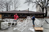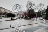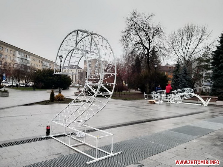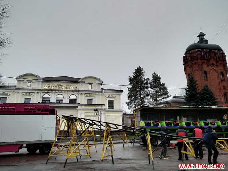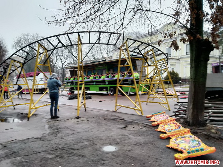 У Житомирі почали встановлювати атракціони та будиночки для різдвяного ярмарку
