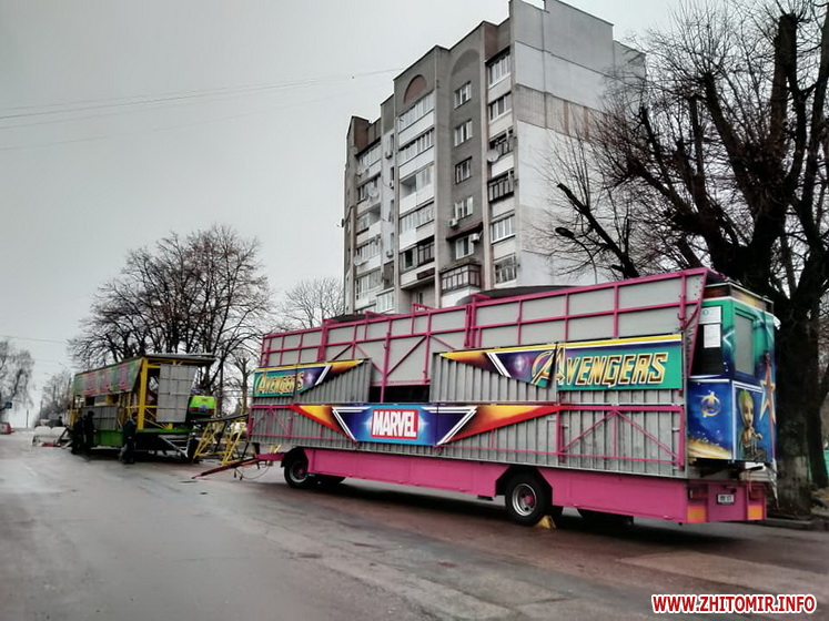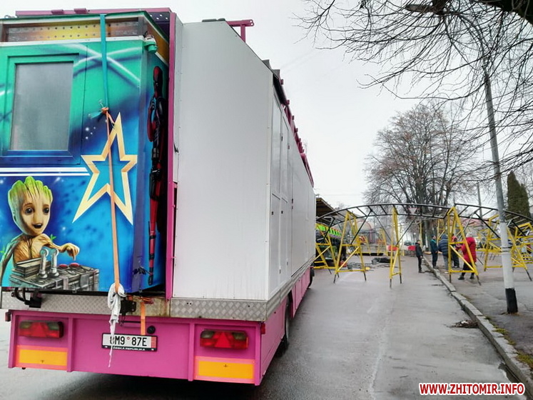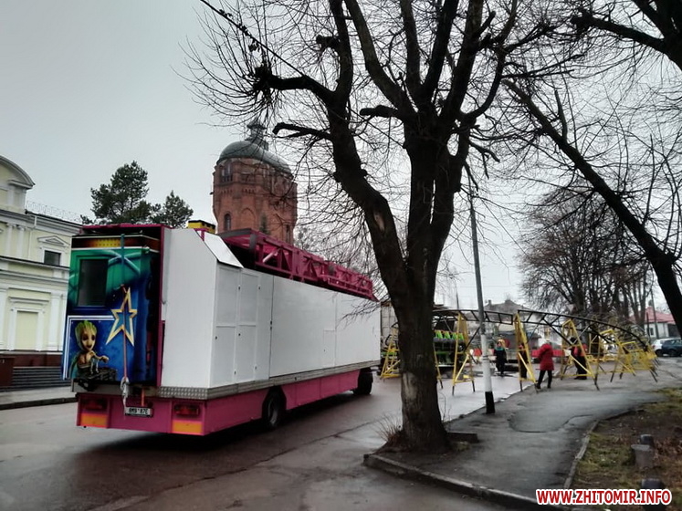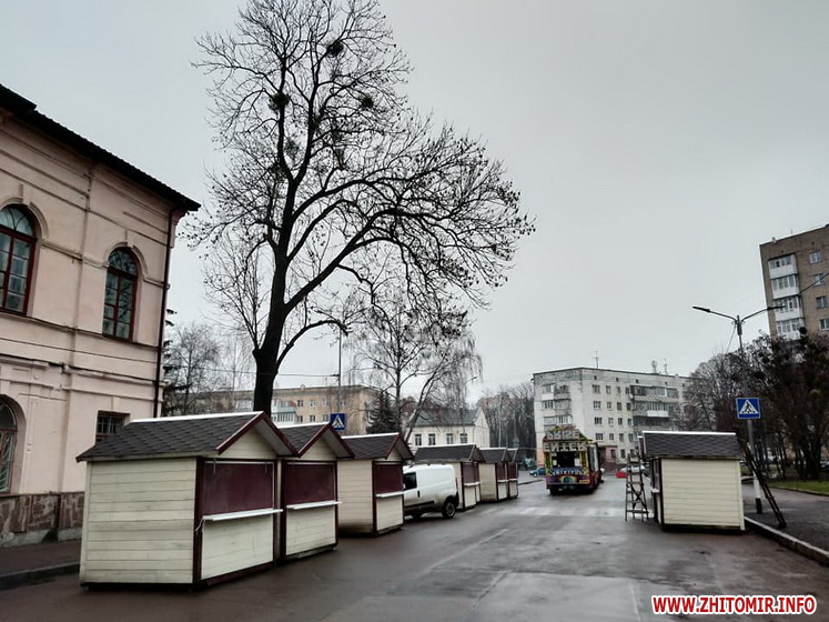 У Житомирі 16 грудня почали встановлювати будиночки для майбутнього різдвяного ярмарку та атракціони. Цього року ці локації будуть на вулиці Пушкінській, біля обласної філармонії. Рух транспорту на цій ділянці дороги буде перекритий.