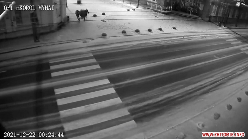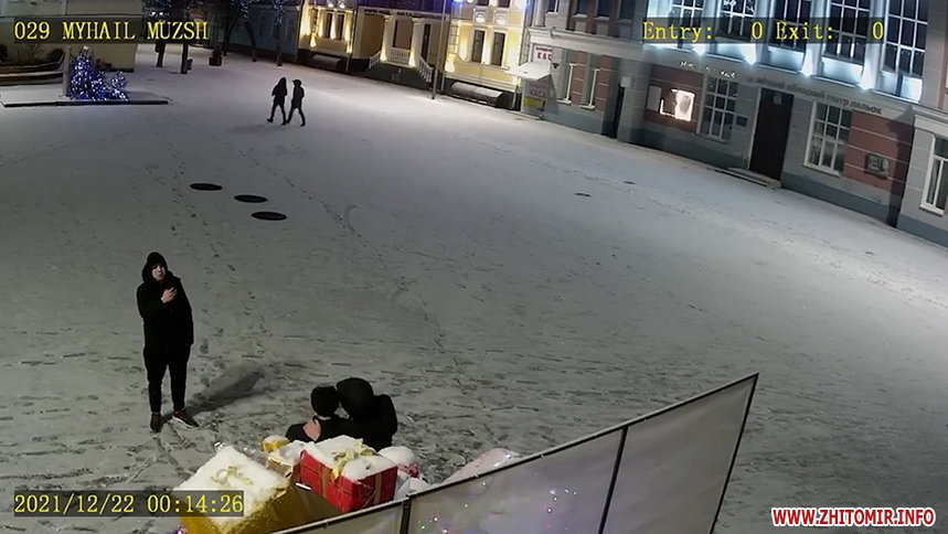 У ніч на 22 грудня на пішохідній вулиці Михайлівській у Житомирі молодики вкрали ялинку, яка росла у дерев’яному ящику. Інцидент зафіксували камери вуличного відеоспостереження.