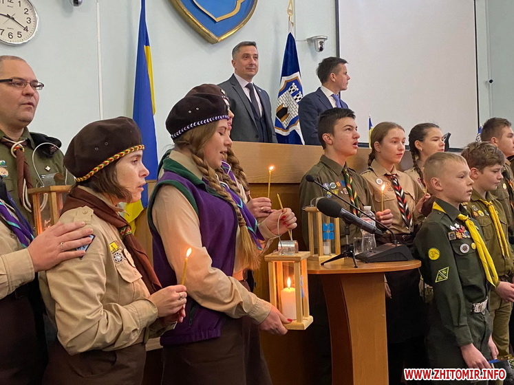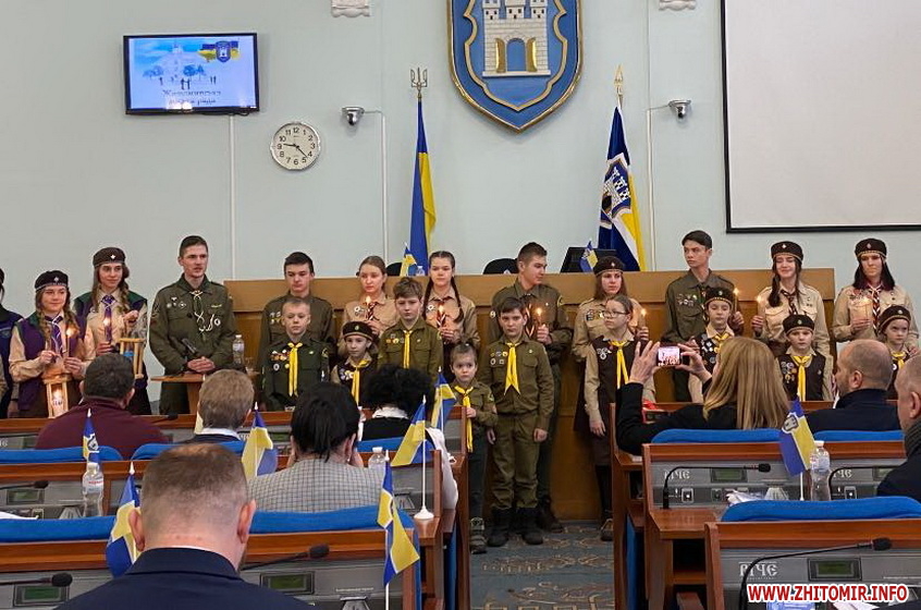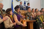 Також на початку останньої в поточному році сесії міської ради депутатів привітали пластуни, які передали вифлеємський вогонь.