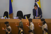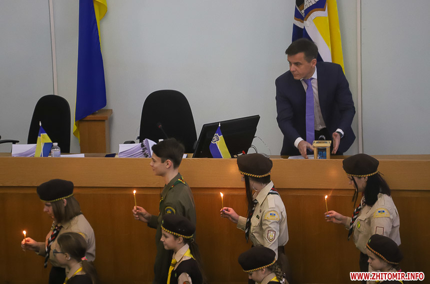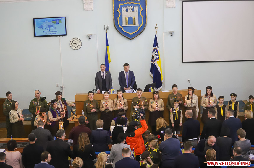 На початку засідання батькам полковника Олександра Петраківського вручили відзнаку до звання «Почесний громадянин Житомира», рішення про присвоєння звання ухвалили на сесії міської ради ще 23 вересня. Також депутатів привітали пластуни та передали вифлеємський вогонь.