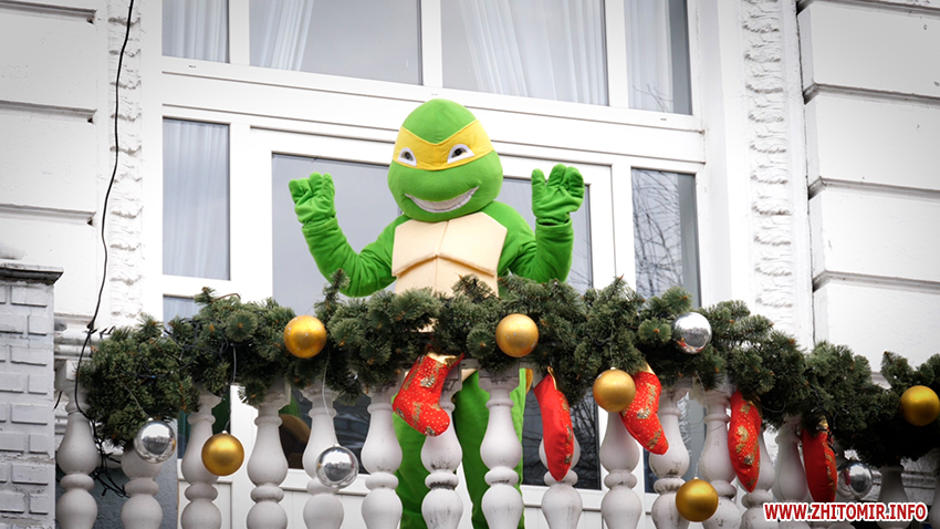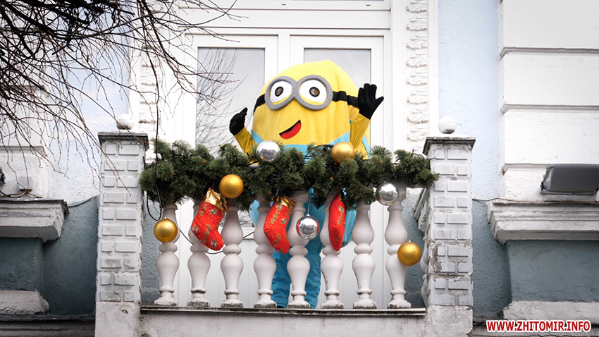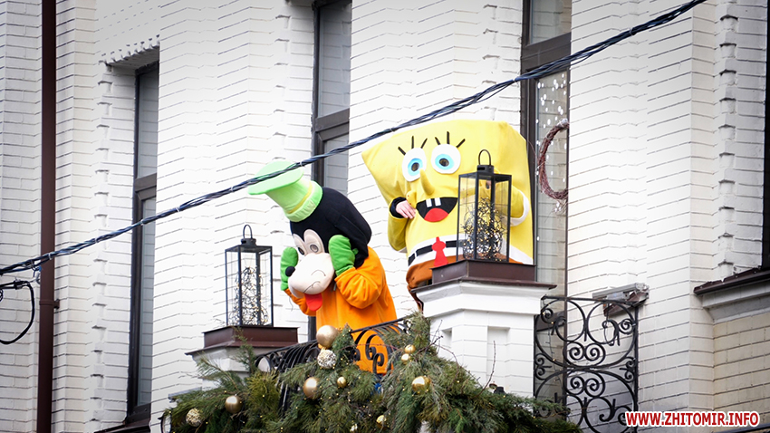 З балконів будівель, які розташовані на вулиці Михайлівській, маленьких житомирян з Різдвом вітали мультиплікаційні герої. Такі вітання сподобалися не лише малечі, а й їх батькам.
