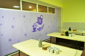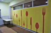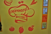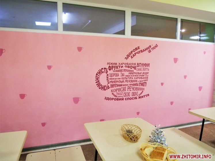 «Вчителі власноруч розмалювали стіни їдальні. Естетика – це теж важливо, бо коли гарно, то й апетит у дітей кращий. - показує керівниця закладу у їдальні настінний напис «Здорове харчування - це тренд». -Ось - чашка здорового харчування, побажання смачного, для стін обрали пастельні тони».