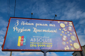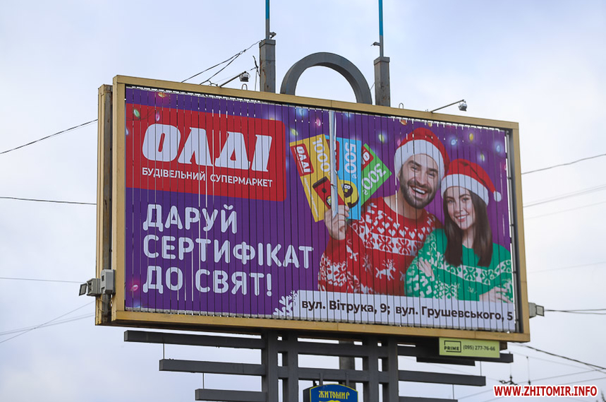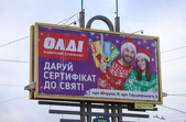 Цьогоріч на білбордах, екранах та сітілайтах у місті не так багато привітань. Більшість закладів та мереж замість вітань просто пропонують святкові знижки, подарункові сертифікати та варіанти подарунків. До прикладу, одна з мереж пропонує 2022 подарунки, інша - увірватися у новий рік разом, а будівельні компанії - знижки на нове житло. Також багато вітань політиків та представників влади.