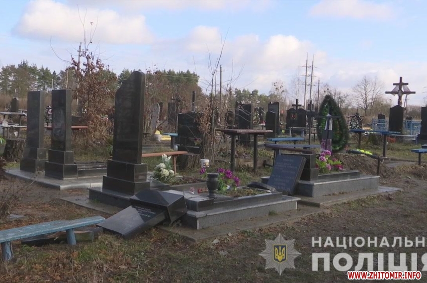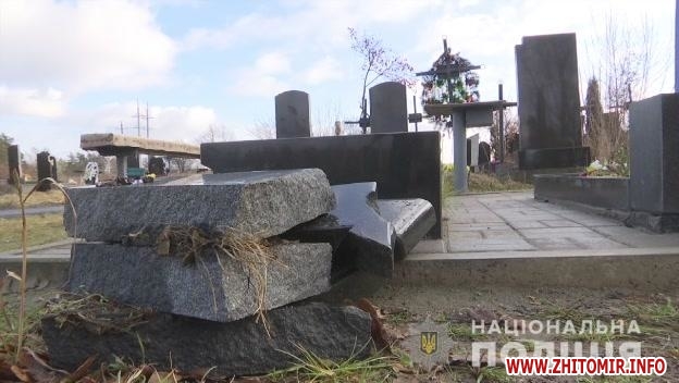 «1 січня до Житомирського райуправління поліції надійшло повідомлення про вандалізм на цвинтарі у с. Слободі-Селець. Під час огляду правоохоронці зафіксували пошкодження гранітних пам’ятників на місцях поховання 14 людей. Також були виявлені та вилучені слідова інформація та інші речові докази», – йдеться у повідомленні.