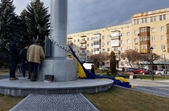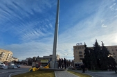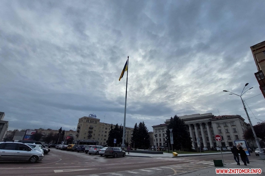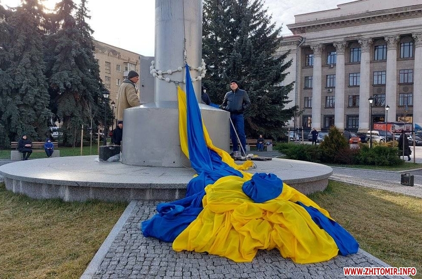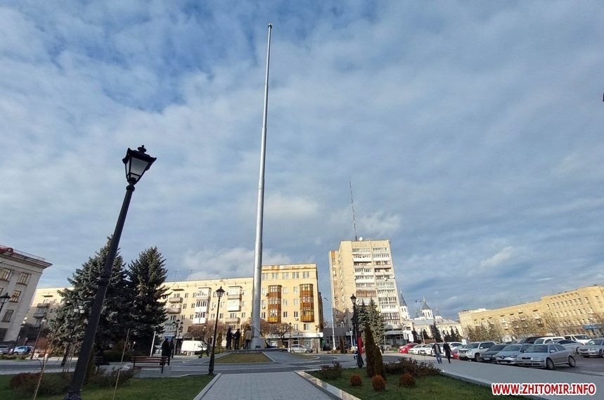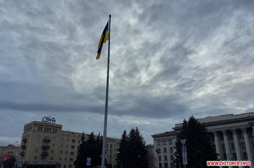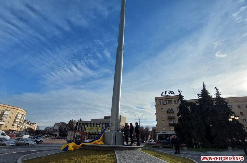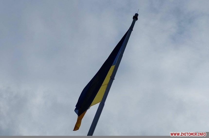 В обідню пору 5 січня на майдані Соборному в Житомирі на 50-метровий флагшток підняли новий прапор. Ним замінили попередній стяг, який був пошкоджений внаслідок поривчастого вітру ввечері 3 січня.