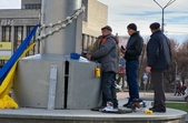 Зі слів перехожих, над заміною прапора комунальники працювали і напередодні, 4 січня. Завершити роботи вдалося вдень 5 січня – в обідню пору синьо-жовтий стяг знову замайорів над майданом.