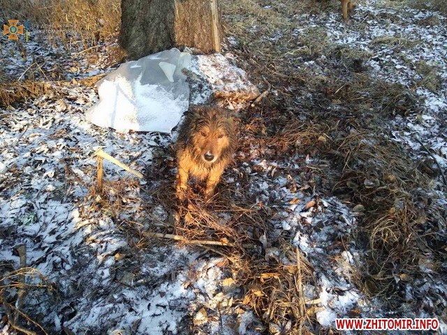 У Коростені 7 січня бійці ДСНС врятували собаку, який провалився в крижану воду під кригу. Рятувальників викликали пильні очевидці, які почули скавчання тварини. Песик борсався у крижаному проломі і ніяк вибратися не міг. Очевидці самотужки не наважилися йти по тонкій кризі на поміч тварині.