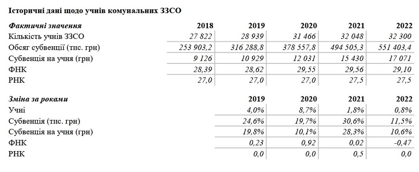 В інформаційній довідці щодо Житомирської міської територіальної громади зазначено, що освітня субвенція на 2022 рік становитиме 551 млн 403,4 тис. грн, що в два рази більше, ніж в 2018 році (253 млн 903,2 тис. грн). Водночас субвенція в розрахунку на одного учня цього року становить 17 тис. 071 грн, тоді як в 2018 році це було 9 тис. 126 грн. Кількість учнів у комунальних закладах освіти зростає і в 2022 році їх вже 32 тис. 300, а фактична наповненість класів у порівнянні з двома попередніми роками дещо зменшилася і в 2022 році вона становить 29,1, хоча розрахункова наповненість – 27,5.