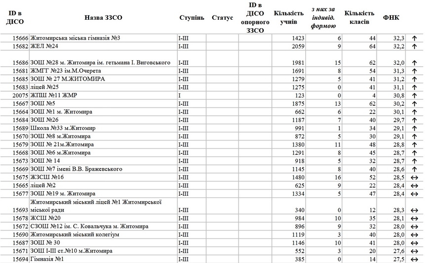 перелік ЗЗСО (без урахування приватних, спеціальних і вечірніх);