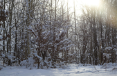 Невеликі морози та постійний дрібний снігопад зберігають на гілках дерев білі пухнасті крони. Синоптики прогнозують упродовж тижня нічні морози до - 18 градусів та потепління до + 3 градусів на кінець робочого тижня.