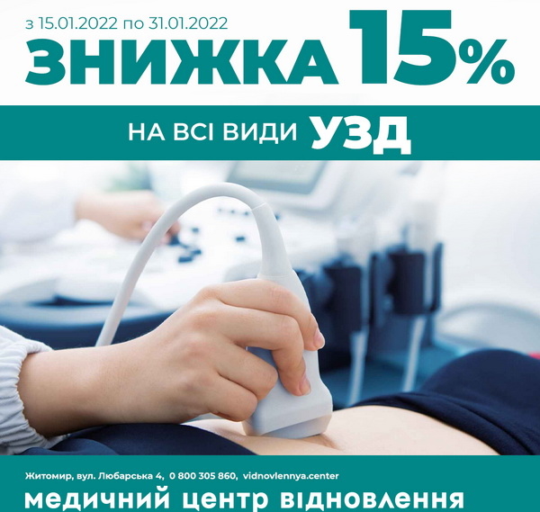 Запис на УЗД за телефоном 0 800 305 860, особисто – за адресою: м. Житомир, вул. Любарська, 4 або замовте зворотній зв'язок на сайті https://vidnovlennya.center/