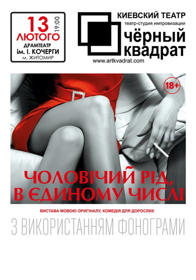 13 лютого у Житомир знову приїде театр «Чорний квадрат» зі спектаклем «Чоловічий рід, в єдиному числі».