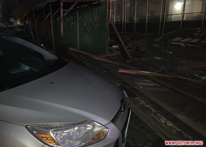 Як повідомляв Житомир.info, 3 січня 2022 року з будівельного майданчику ЖК «Сімейний», що на вулиці Домбровського в Житомирі, через сильні пориви вітру злетіла дерев’яна конструкція з кількох дощок і впала на легковий автомобіль, пошкодивши лобове скло та погнувши капот.