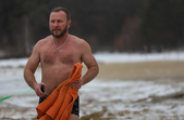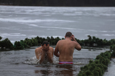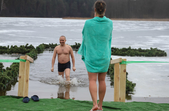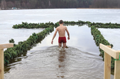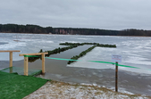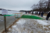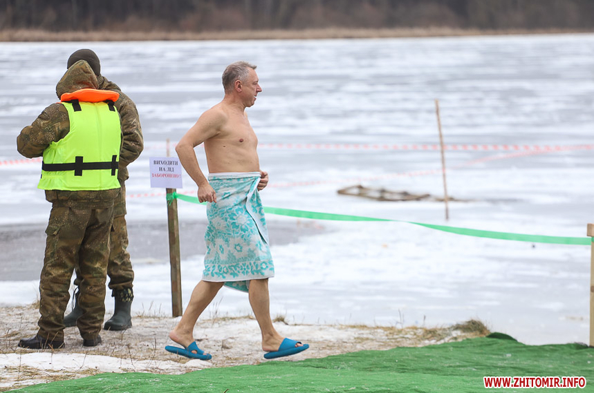 Для охочих пірнути в крижану воду облаштували переодягальні. Підхід до річки був можливий лише в спеціально облаштованому місці, поруч водойму огородили й розмістили написи про заборону виходити на лід. На місці чергують рятувальники та медики.