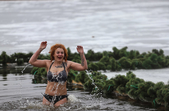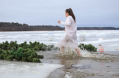 Цьогоріч деякі дівчата занурюються в ополонку не у купальниках, а у довгих білих сорочках.