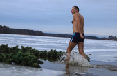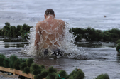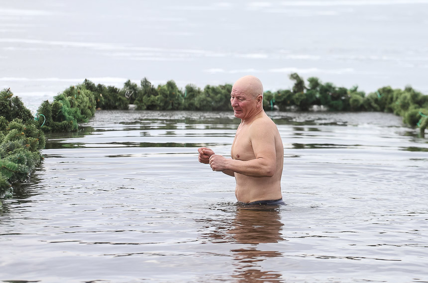 О 10-ій ранку з колонок залунали святкові щедрівки, також періодично озвучували правила безпечного купання. Дехто дотримується цих правил – перед зануренням робить фізичні вправи та розігрівається.
