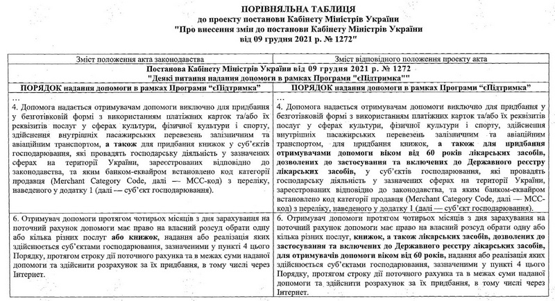 Кабінет міністрів вніс зміни до постанови про надання допомоги в рамках програми «єПідтримка» для вакцинованих двома дозами і дозволив купувати ліки громадянам «від 60 років».