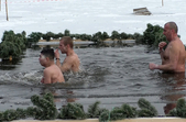 Поблизу місяця для купання обладнали два намети, де можна було переодягнутися. Біля берега річки чергували рятувальники.