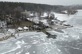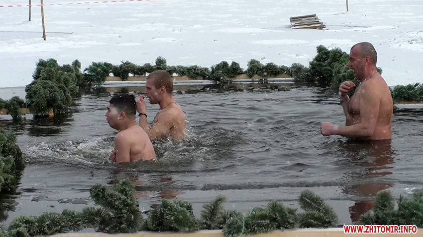 У житомирському гідропарку свято Водохреще відзначили богослужінням та традиційним зануренням в ополонку на річці Тетерів.