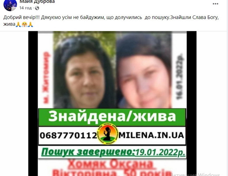 Як повідомляв Житомир.info, з 13 січня 2022 в Житомирі розшукували 50-річну Оксану Хом’як.