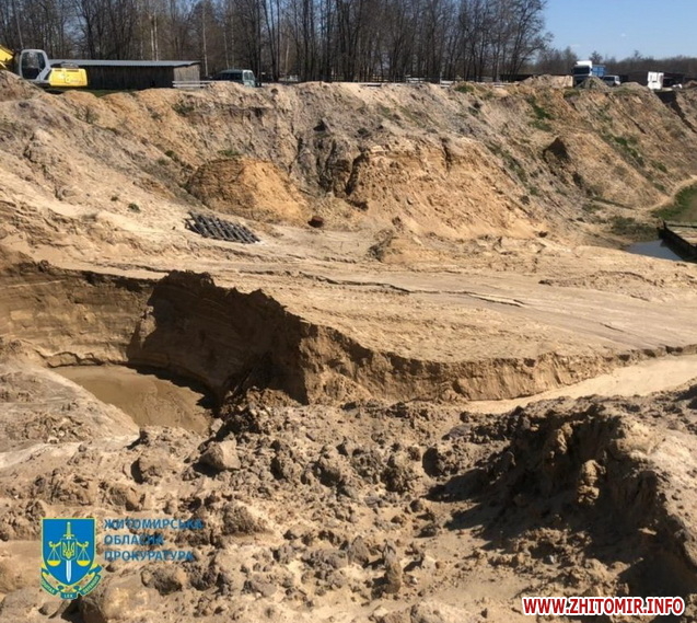«Прокурори Житомирської обласної прокуратури скерували до суду обвинувальний акт стосовно організованої групи за фактами порушення правил використання надр, що створило небезпеку довкіллю та спричинило тяжкі наслідки, незаконного заволодіння ґрунтовим покривом земель та безгосподарського використання земель, що спричинило порушення структури ґрунту (ч. 4 ст. 240, ч. 1 ст. 239-1, ч.1 ст. 254 КК України)», - йдеться у повідомленні.