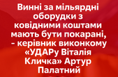 Всі без виключення закупівлі з державного Фонду боротьби із COVID-19 мають здійснюватись через систему «Prozorro», а винні за мільярдні оборудки з ковідними коштами мають бути покарані. Про це заявив керівник виконкому «УДАРу Віталія Кличка» Артур Палатний на своїй сторінці у Facebook.