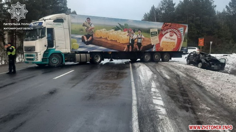 Як повідомляв Житомир.info, вранці 27 січня 2022 на бердичівській трасі сталася ДТП: легковик зіткнувся з вантажівкою. Одного з водіїв госпіталізували.
