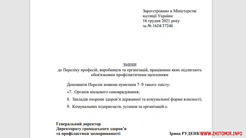 «Дорученням міського голови було доведено до відома всіх керівників, як виконавчих органів влади, так і керівників комунальних підприємств, про необхідність дотримання наказу Міністерства охорони здоров'я та проведення обов'язкових щеплень проти COVID-19. На сьогодні за інформацією КП «Житомирводоканал», лише від них надійшла інформація, їх працівники є повністю вакцинованими проти COVID-19. Від інших комунальних підприємств інформації наразі немає, ми її очікуємо», – сказала Наталя Григорчук.