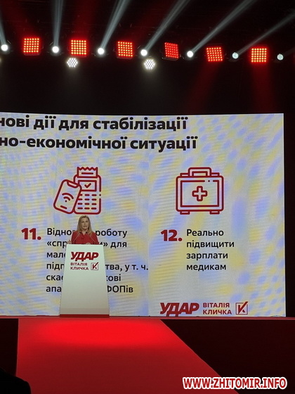 «Сьогодні тут зібрались люди, які не звикли розраховувати на інших і завжди беруть відповідальність на себе. Нам робити життя в країні безпечним, нам захищати родини й громади, а значить, й нам змінювати умови для розвитку українського виробництва, розвивати підприємництво, забезпечувати справедливі умови оплати праці, формувати конкурентну освіту для молоді та достойне пенсійне забезпечення для більшості громадян. Наше з вами завдання – створювати майбутнє вже сьогодні, не зважаючи на політичні цикли та чиїсь амбіції", - сказала під час презентації економічного плану дій представниця «УДАРу» Оксана Продан.
