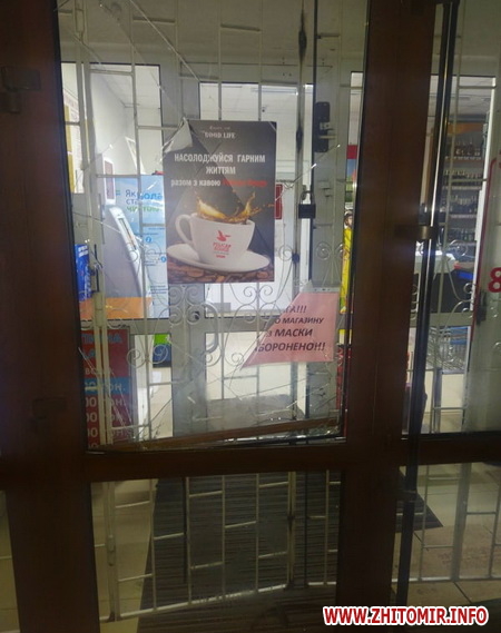 Як повідомляв Житомир.info, у ніч на 29 грудня 2021 патрульні затримали молодика, який на Великій Бердичівській у Житомирі розбив скляні двері магазину.