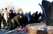 «Мій чоловік служив в Афганістані. По-друге, в Афганістані загинув його найрідніший друг, і по-третє, ми працюємо в школі і в нас теж є загиблий в Афганістані, це Валерій Лук’яненко, тому ми вважаємо своїм обов’язком бути сьогодні тут», — каже Оксана.