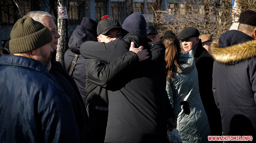 «Тридцять три роки пройшли, як день. Ми живемо не від нового року до нового року, а ми живемо від 15 лютого до 15 лютого. Це в душах наших жінок, наших дітей. В мене дві доньки, вони шанують мене, вони ще молоді, треба пам’ятати, онуки повинні пам’ятати, що батько чи дід воював. Тому сьогодні ми відзначаємо цю дату проведенням щорічного мітингу. Перед цим завжди у нас була урочиста хода, але ми як військовослужбовці, як ветерани розуміємо, що складна військово-політична ситуація в нашій державі і урочиста хода, коли йде війна на сході України, недоцільна», — говорить голова Житомирської міської спілки ветеранів Афганської війни Юрій Панасюк.