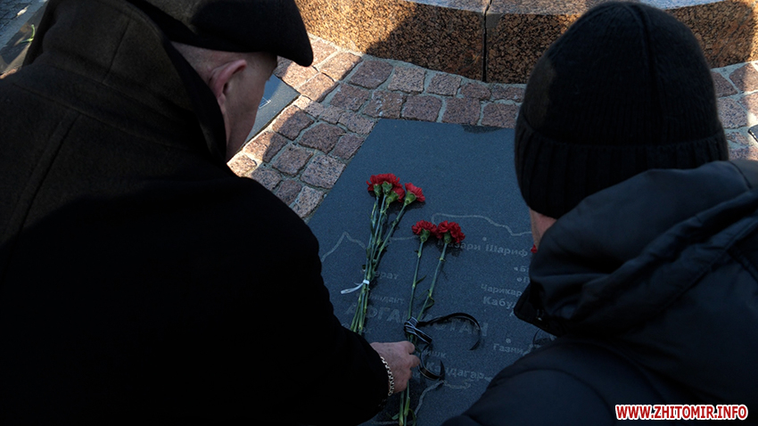 Як повідомляв Житомир.info, 15 лютого 2021 року в Житомирі відзначали 32-у річницю виведення військ з Афганістану. Опівдні цього дня ветерани Афганської війни пройшли колоною через центр Житомира від майдану Соборного до пам’ятника «Чорний тюльпан» на Новому бульварі.
