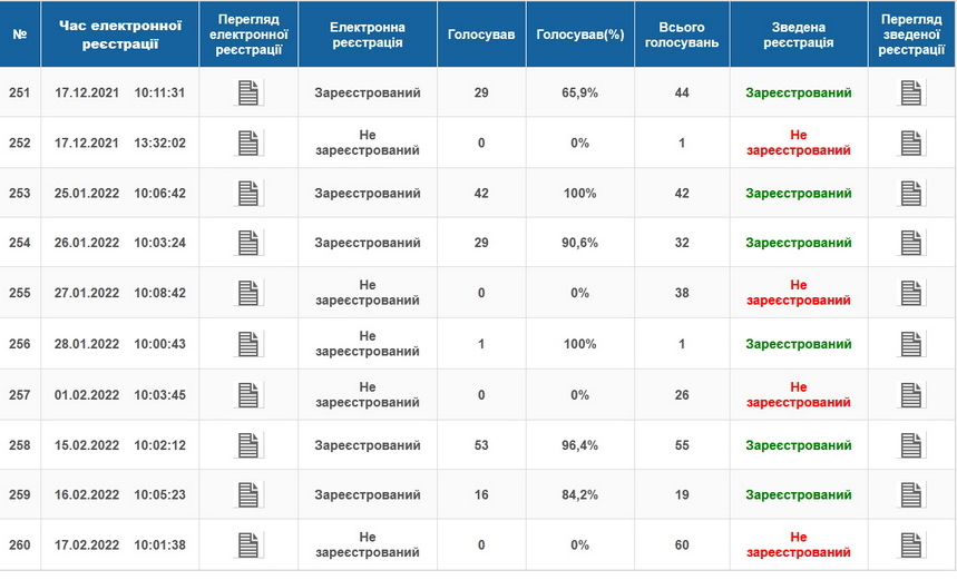 Скріншот з сайту ВРУ щодо електронної реєстрації Сергія Кузьміних