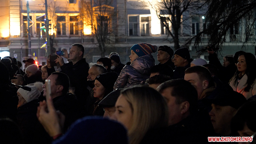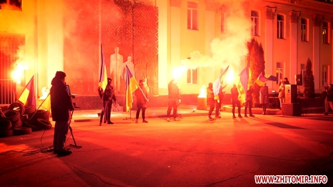 На початку заходу житомиряни запалили вогонь у бочках і виконали гімн України. Опісля, присутнім показали театралізовану реконструкцію подій Майдану.