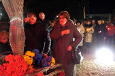 Дорослі та діти із квітами, лампадками та синьо-жовтими стягами 20 лютого прийшли до пам'ятного знаку Героям Небесної сотні на майдані ім. Корольова, аби вшанувати пам’ять загиблих Героїв Майдану.