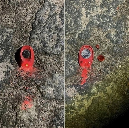 «Увага! Якщо хтось помітить подібні предмети, слід негайно їх розбити і повідомляти про них до поліції! Нагадуємо також, що слід звертати увагу на появу сигнальних стрічок, розміток, позначок та інших міток на дорогах чи будівлях НАШОІ ЗЕМЛІ. Їх також знищувати: засипати, замальовувати чи у будь-який інший спосіб зробити невидимими», – закликають у поліції.