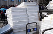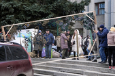 27 лютого у Житомирі біля колишньої Богунської районної триває збір необхідних речей: кожну хвилину люди приносять постіль, ковдри, матраци та продукти харчування.
