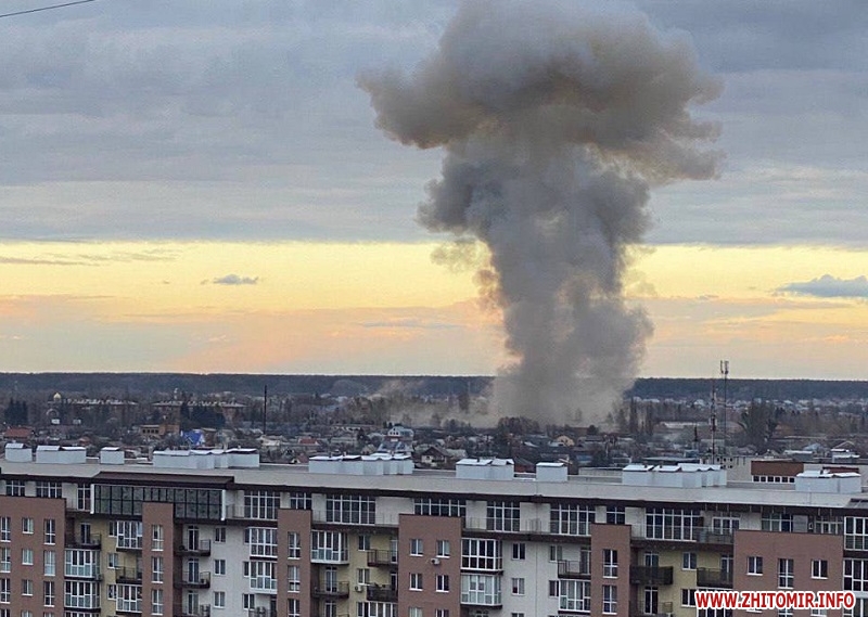 О 17.20 27 лютого в Житомирі оголосили повітряну тривогу. Негайно спустіться в укриття. У цей час житомиряни чули вибухи. Стовп диму було видно у навколишніх селах.