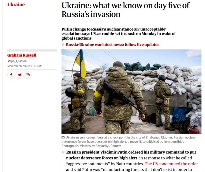 Нижче - скріншот зі сторінки найвпливовішої британської газети «The Guardian»