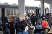 Із третього березня запровадили евакуаційний поїзд з Житомира до Львова. Поїзди курсуватимуть регулярно – щодня о 13 годині через Бердичів. Як бачимо, сьогодні, 3 березня, тут багато охочих переїхати, люди приходять сім'ями, не залишають і домашніх улюбленців.
