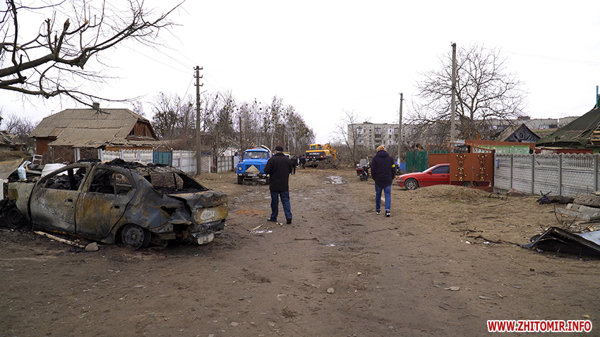 «Справа в тому, що в росії всюди в інтерв’ю наголошують, що це спецоперація, що якісь там військові, демілітаризація проводиться військових об’єктів. Але наразі ви можете кругом подивитися: знайдіть мені хоч якусь адміністративну тут будівлю або будь-яку іншу будівлю. Це просто спальний район, причому тут приватний сектор. І от є будинки, ви бачите, багатоповерхівки. Тобто, це саме житловий район, де найбільше знаходиться мирного населення. І ми бачимо, що удар якраз відбувся по тому району, де знаходиться просто цивільне населення. Ніяких тут військових, поліції, прокуратури – будь-яких структур тут, у цьому місці, не було розташовано. Але ви бачите, яка наразі ситуація. Також ще один снаряд упав, як ми зранку виявили, на території біля школи. Наразі район оцеплений, ми чекаємо піротехніків для того, щоб його знешкодити. Один загинув, дитина травмована, і також 5 дорослих осіб травмовані. Тут до 15 будинків знищено і пошкоджено, деякі повністю знищені. І також в Овручі знищено до 15 будинків. Загальна кількість – десь орієнтовно 30 будинків. Наразі розбирають завали для того, щоб нам більш детально порахувати та оглянути, тому що не всі господарі є на сьогодні на місці. Тому, можливо, ще буде цифра змінюватись. Ми зараз готуємо відповідні документи, акти, і з обласного бюджету будуть виділятися кошти власникам цих будівель для їх відновлення. Поки ми запропонуємо варіанти: ми їх можемо тимчасово поселити у санаторії, який зарезервований на такі випадки – тут, недалеко знаходиться, в радіусі 40 кілометрів. Якщо вони забажають. А як ні – у нас евакуаційні автобуси або в нас щоденно курсував потяг до Львова: вони їдуть на кордон до Львова, а тоді виїжджають автобуси зі сторони Польщі, зустрічають їх і забирають. Тобто, будемо пропонувати нашим громадянам», – каже начальник Коростенської військової адміністрації Юрій Тарасюк.