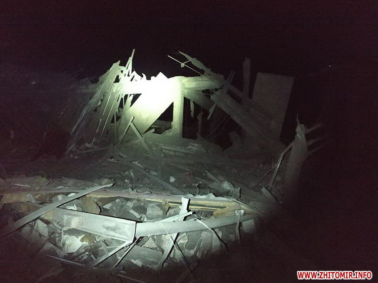 м. Овруч – зруйновано двоповерхову будівлю центру зайнятості та вибуховою хвилею пошкоджено вікна в трьох п’ятиповерхових багатоквартирних житлових будинках. Попередньо постраждала 1 особа. Від ДСНС залучено 11 осіб та 2 од. техніки.