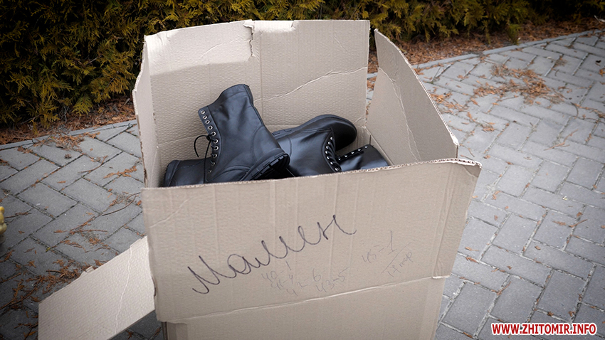 Ці берці вже чекають у Львові, Києві і, звісно, захисники у Житомирській області. Ось, наприклад, цю коробку підготували для Малина.